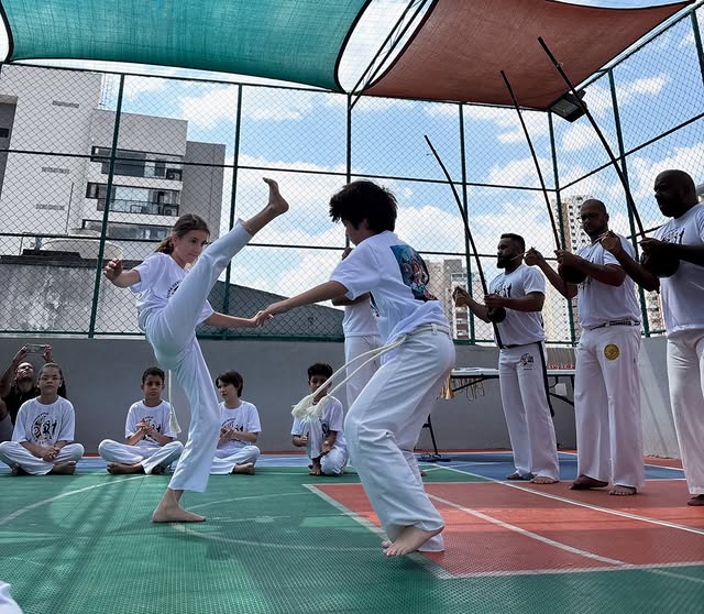 Arte afro-brasileira que integra música, luta e dança, desenvolvendo coordenação, ritmo, disciplina e autoestima. Estimula criatividade, cooperação e expressão artística.